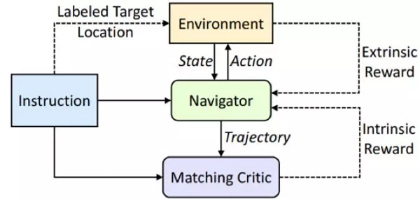 我们提出了一种全新的增强型跨模态匹配(RCM)框架,能让强化学习同时使用外部奖励和内部奖励;其中我们引入了一种循环重建奖励作为内部奖励,以强制执行语言指令和智能体轨迹之间的全局匹配。
