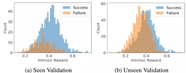 图 6:在见过的和未见过的验证集上的内部奖励的可视化