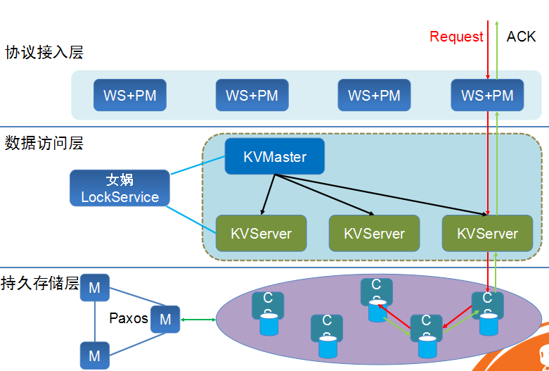 分布式文件系统盘古和Google的GFS类似,盘古的架构是Master-Slave主从架构,Master负责元数据管理,Sliave叫做Chunk Server,负责读写请求。其中Master是基于Paxos的多Master架构,一个Master死了之后,另外一个Master可以很快接过去,基本能够做到故障恢复在一分钟以内 。文件是按照分片存放,每个会分三个副本,放在不同的机架上,最后提供端到端的数据校验。
